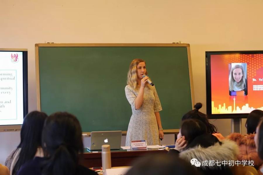 成都七中高新校区的彭小玲老师带来了一堂思维启发式的八年级写作课《Unit 7 Section B 3a-3c Do You Think You Will Have Your OwnRobot》,上海市风华初级中学华怡洁带来八年级《Unit4 Period 5 Reading:Different people and different jobs》,成都七中初中学校吴晓霞老师带来九年级《Unit8 section2a-2e,reading》 。其后,来自我校友好学校英国兰德福瑞学校的资深教师 ValentinoNoble为大家介绍了国际理解教育的实施策略和途径。上海市风华初级中学教育集团副校长沈洁女士担任此次分会场主持人。四川省教育学会外语教学专业委员会秘书长覃文胜老师担任此次分会场的点评专家。